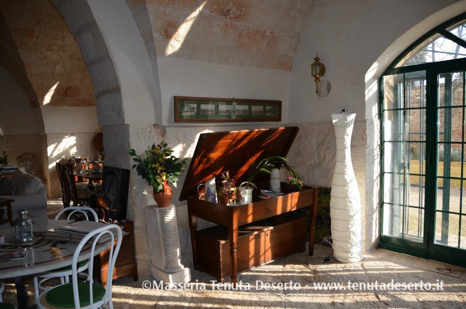 Es ist ein großer Raum, der von großen Steingewölben getragen wird, ausgestattet mit Fernseher, Tischen und Sofas, ein idealer Ort für Treffen zwischen Gästen, Gespräche und Unterhaltung.