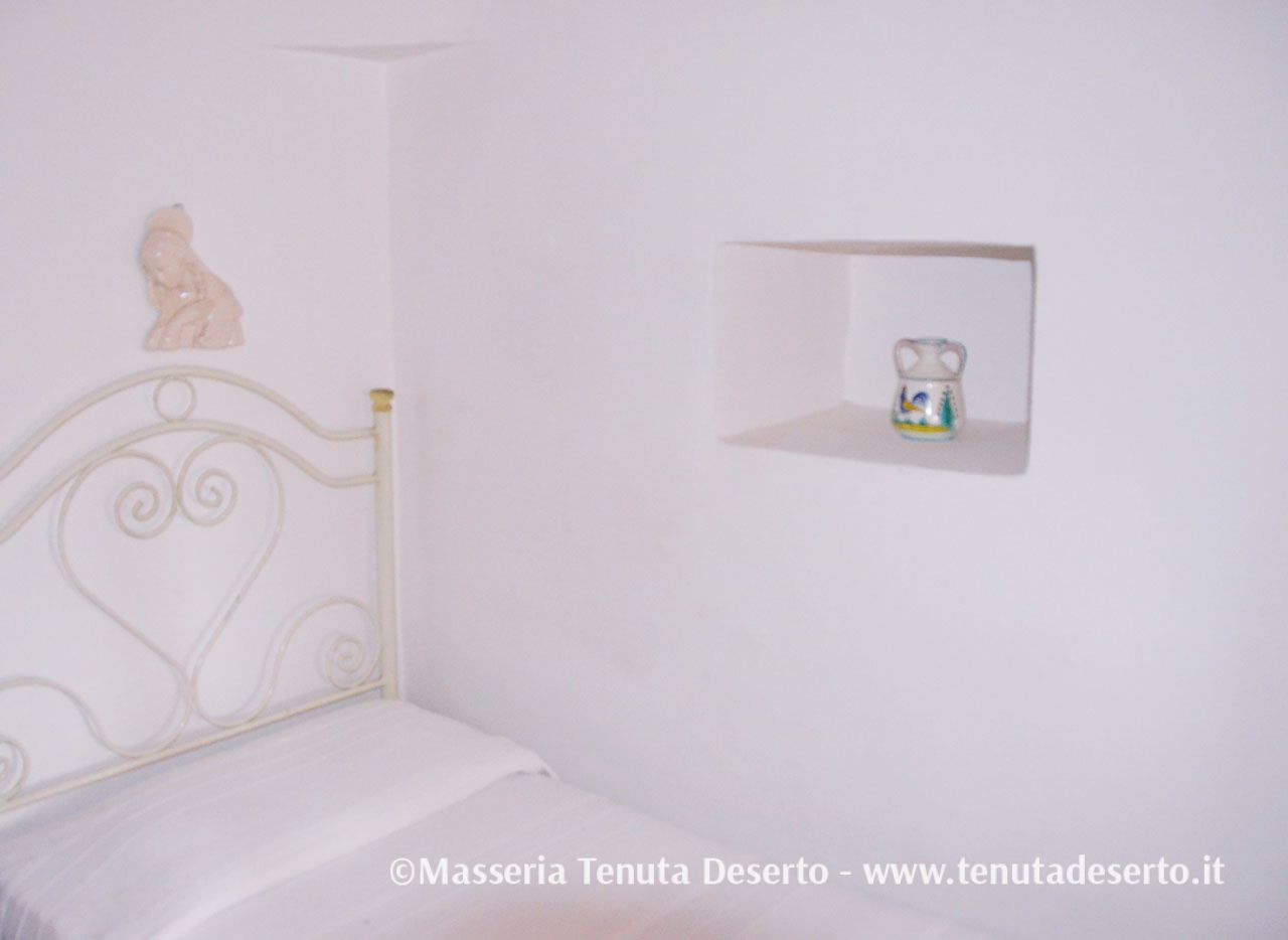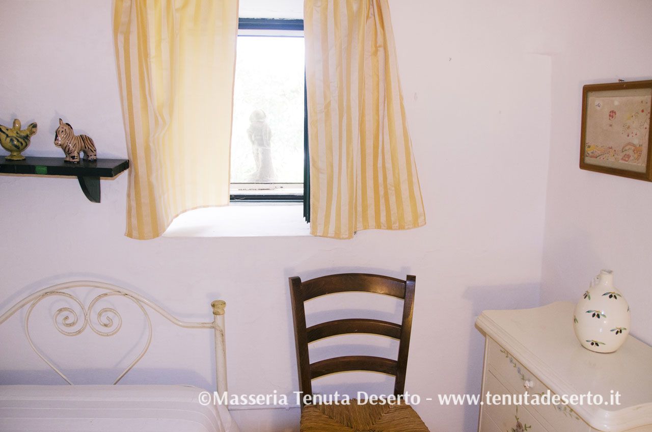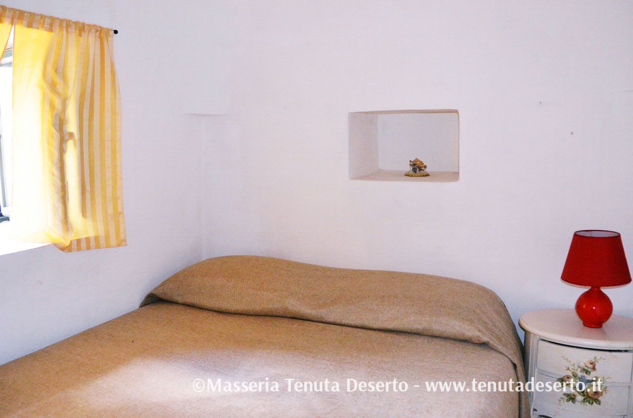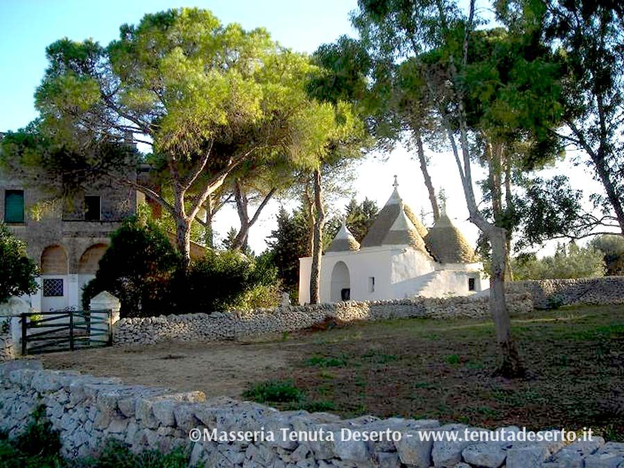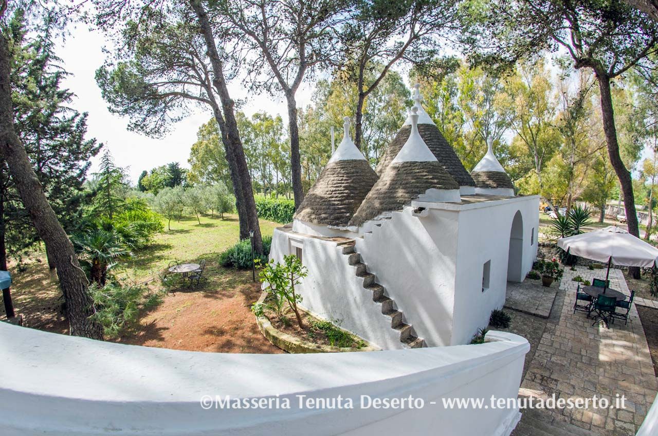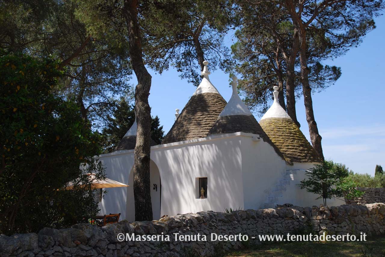 Einzeln stehendes, typisch apulisches Haus (Trullo), umgeben von mächtigen Pinien. Klimaanlage, Wohnzimmer, ein Zimmer mit Doppelbett, zwei Einzelzimmer, Badezimmer mit Dusche, Küche. Großzügiger, unabhängiger Außenbereich.
