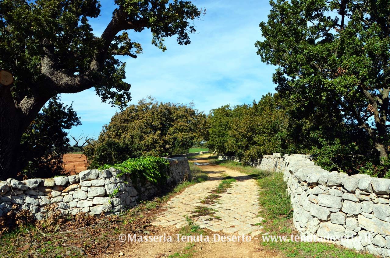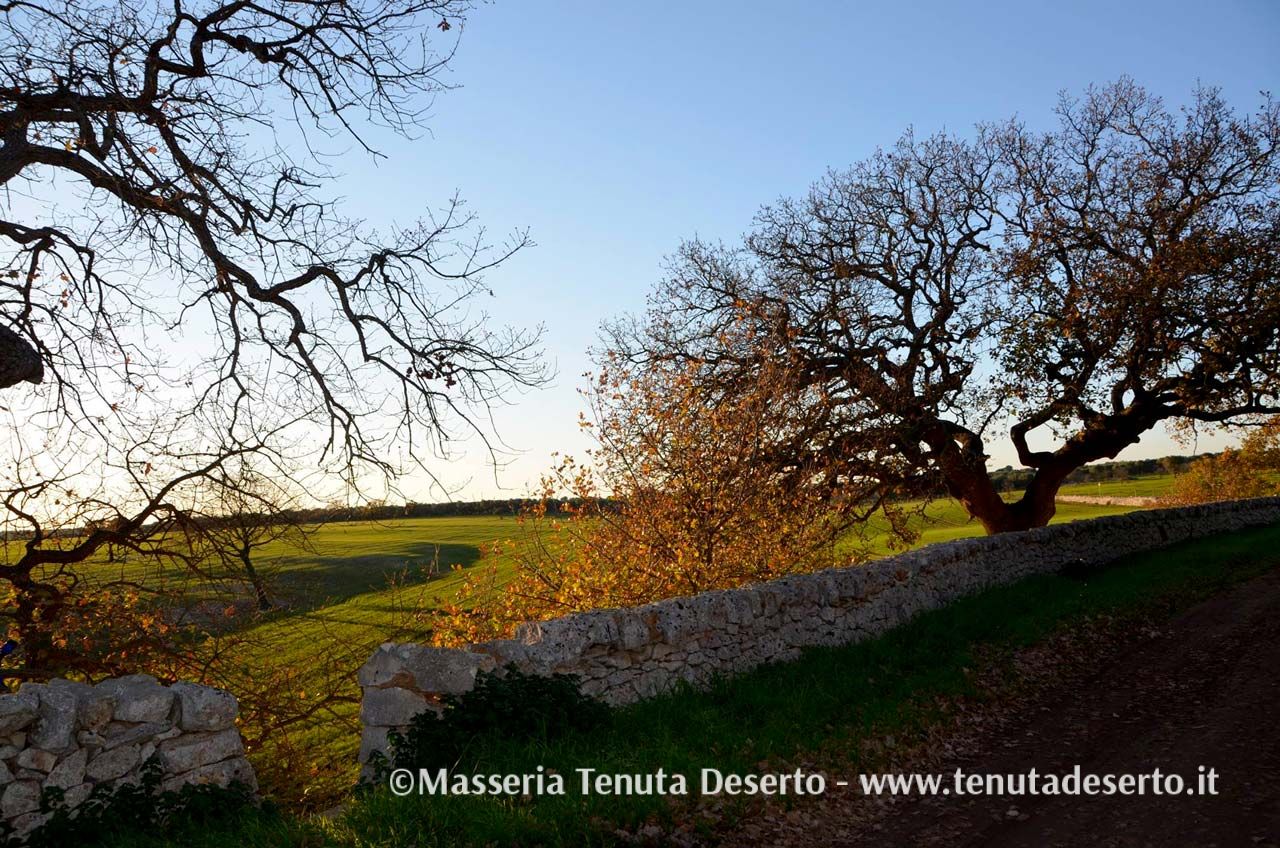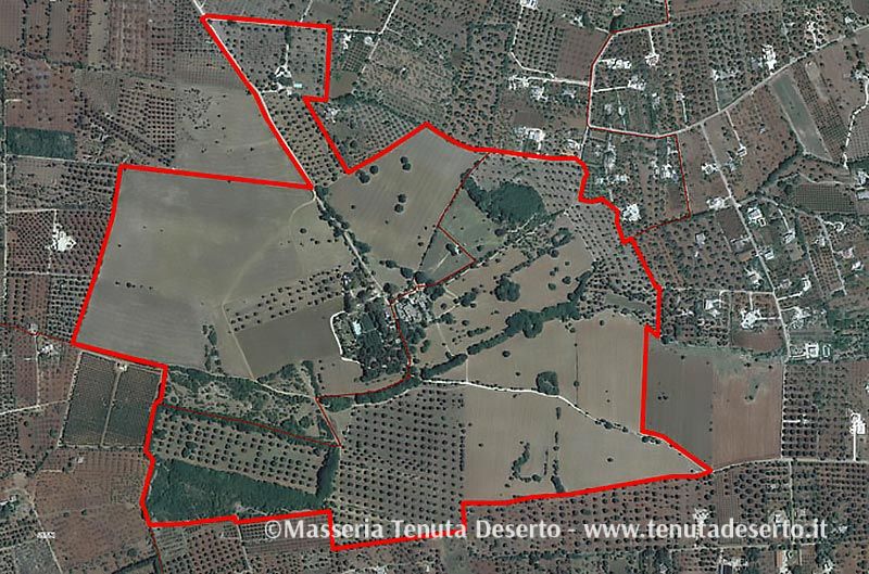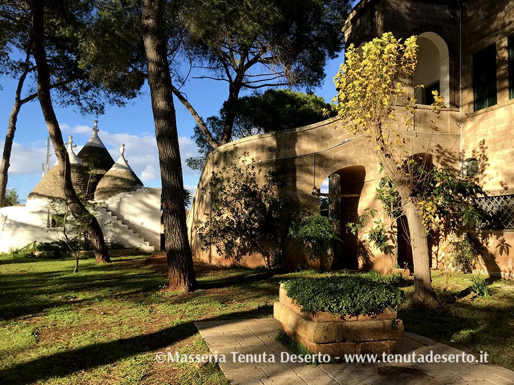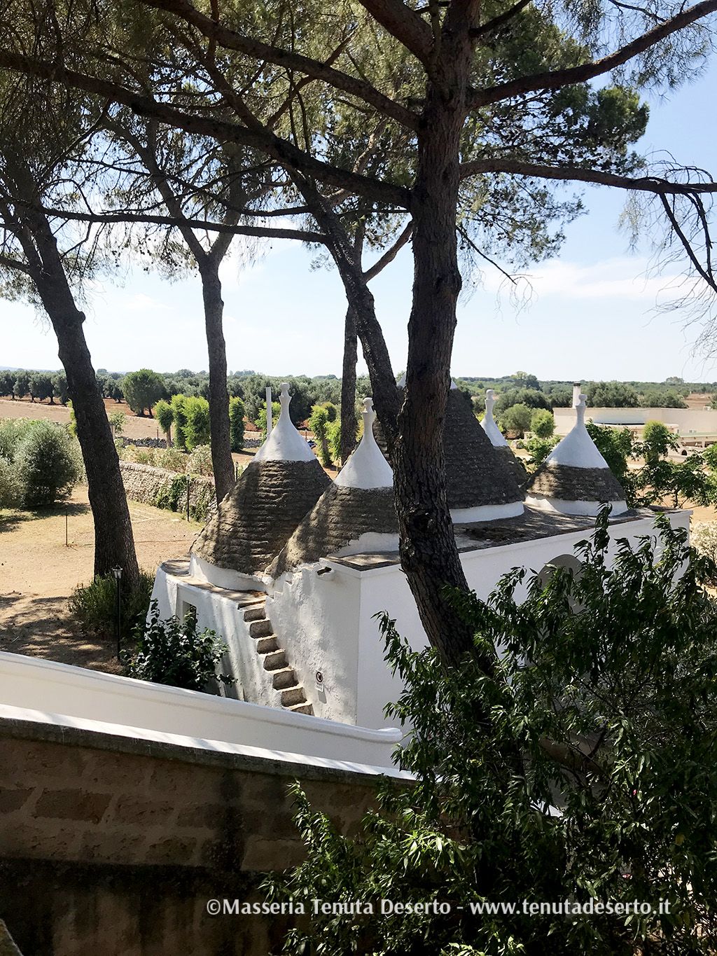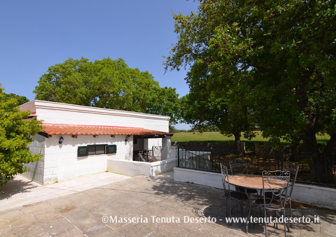 La Masseria Tenuta Deserto, situata a 4 Km da San Vito dei Normanni, a 15 Km da Ostuni e a 12 Km dalle spiagge di Torre Guaceto, area protetta dal WWF, nella stupenda e suggestiva campagna pugliese, vi accoglie nei suoi 75 ettari di uliveti, seminativi, pascoli e boschi di querce e lecci. La Masseria, situata al centro della Tenuta, è stata costruita in periodi successivi dal tardo medioevo alla metà dell'800 e la proprietà si tramanda fino ad oggi dalla fine del 700. La Masseria comprende la Torretta tardo medievale, la Casa Principale, la Club House, un caratteristico Trullo, la Cappella, antichi fabbricati rurali, le corti per il ricovero degli animali, e rappresenta da sempre quel classico ambiente rurale che in Puglia prende proprio il nome di Masseria. Tutti i fabbricati sono oggi ristrutturati in confortevoli abitazioni.
