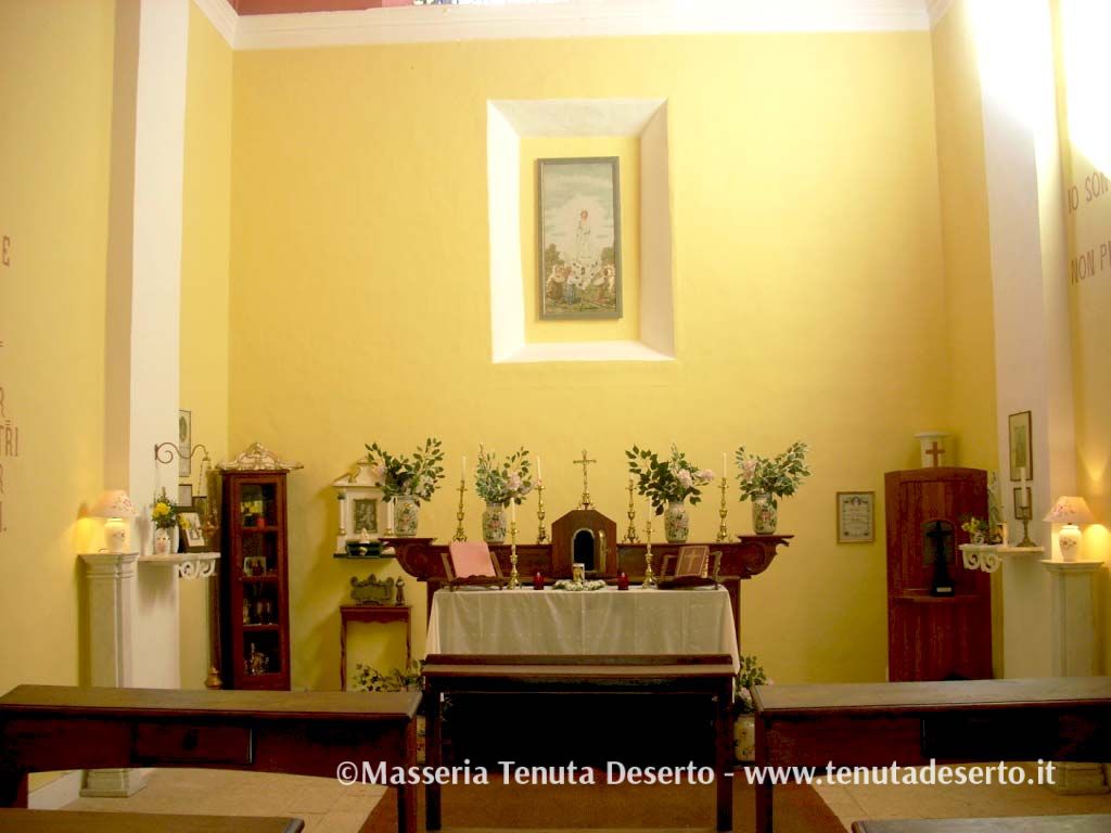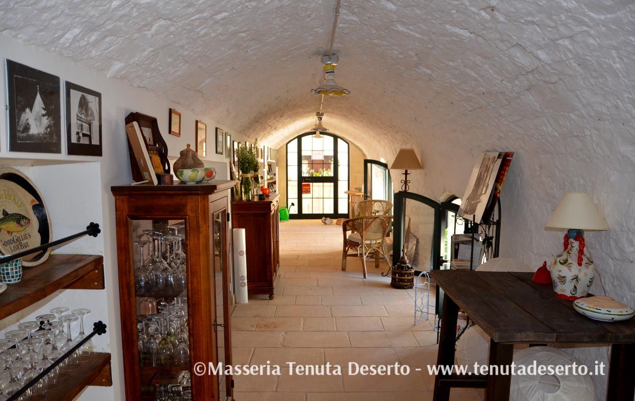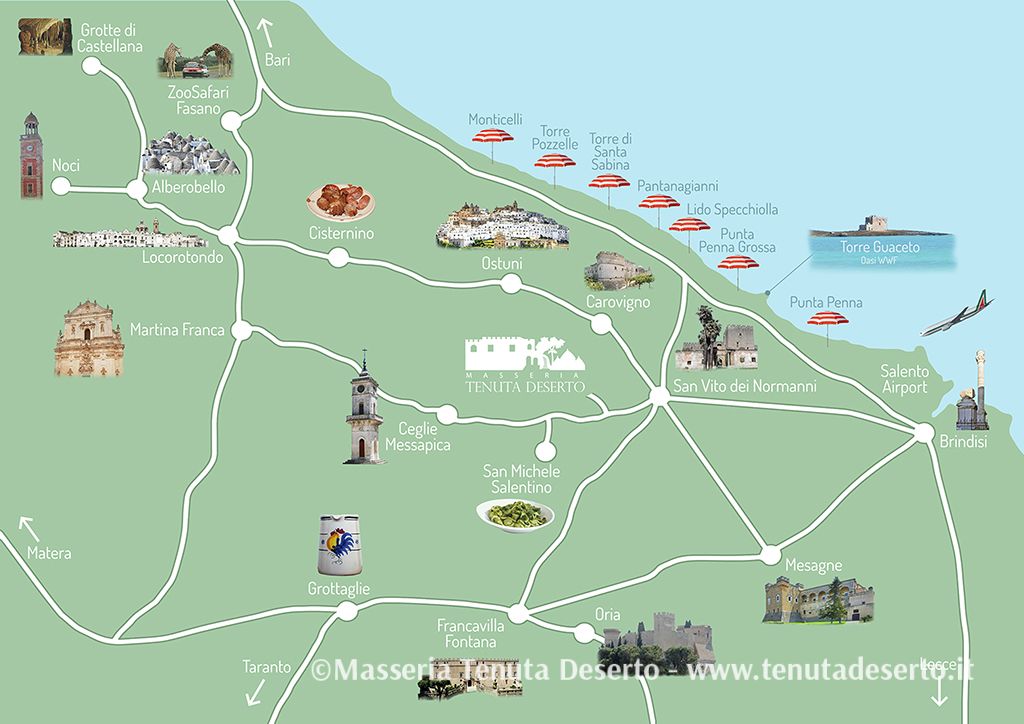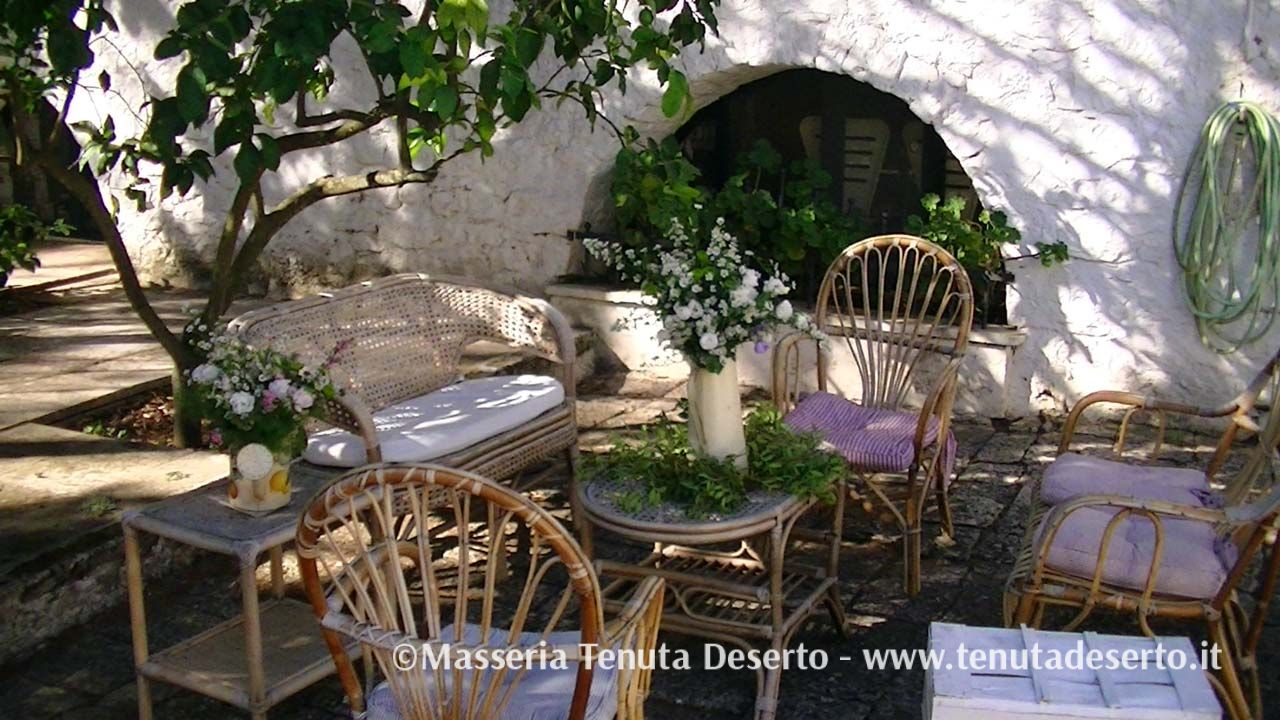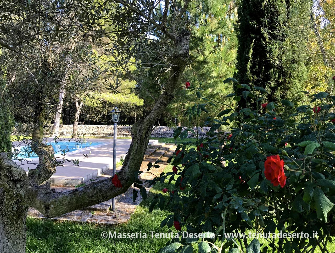 La Masseria Tenuta Deserto, situata a 4 Km da San Vito dei Normanni, a 15 Km da Ostuni e a 12 Km dalle spiagge di Torre Guaceto, area protetta dal WWF, nella stupenda e suggestiva campagna pugliese, vi accoglie nei suoi 75 ettari di uliveti, seminativi, pascoli e boschi di querce e lecci. La Masseria, situata al centro della Tenuta, è stata costruita in periodi successivi dal tardo medioevo alla metà dell'800 e la proprietà si tramanda fino ad oggi dalla fine del 700. La Masseria comprende la Torretta tardo medievale, la Casa Principale, la Club House, un caratteristico Trullo, la Cappella, antichi fabbricati rurali, le corti per il ricovero degli animali, e rappresenta da sempre quel classico ambiente rurale che in Puglia prende proprio il nome di Masseria. Tutti i fabbricati sono oggi ristrutturati in confortevoli abitazioni.