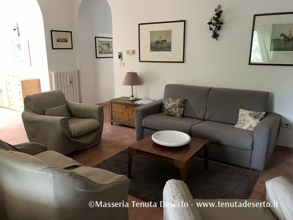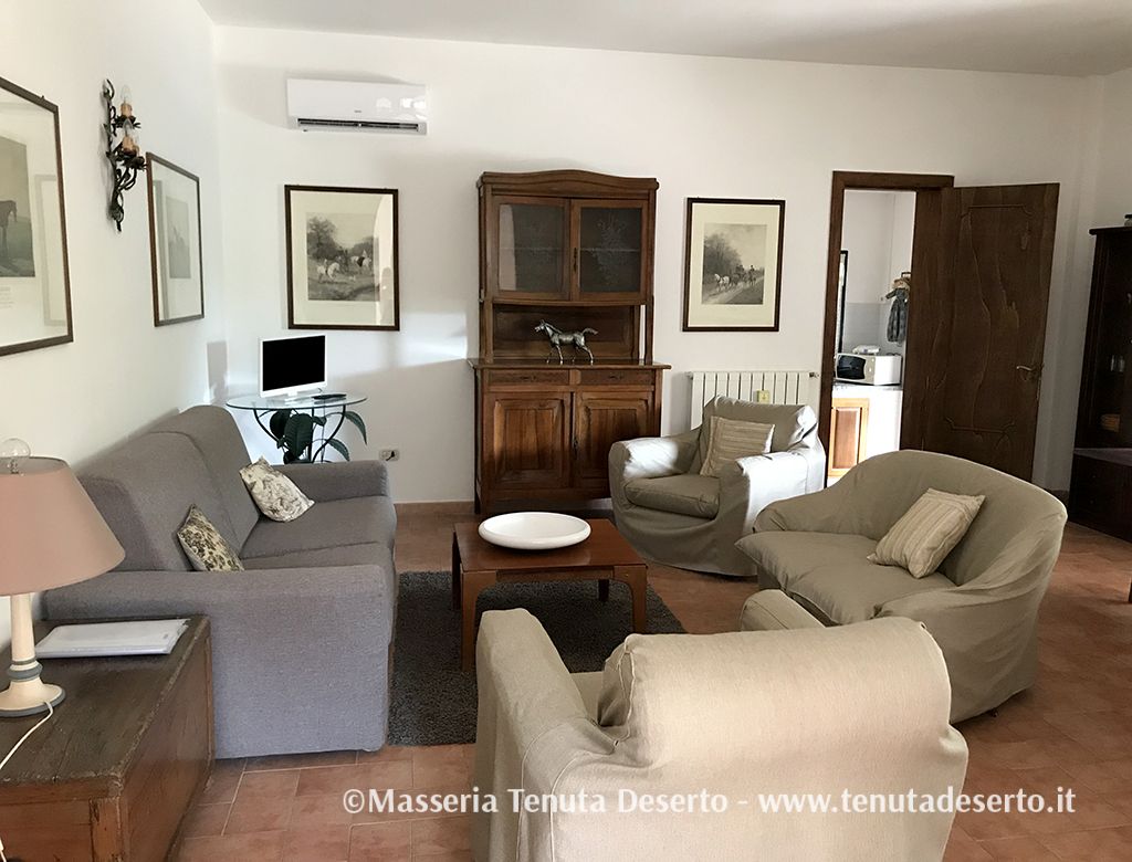 Doppio ingresso, soggiorno/sala da pranzo con TV e camino, camera matrimoniale, camera doppia, bagno con doccia, cucina attrezzata con accesso ad ampia veranda coperta. Aria condizionata. Giardino privato con tavoli, sedie e sdraio. Solarium e doccia esterna.